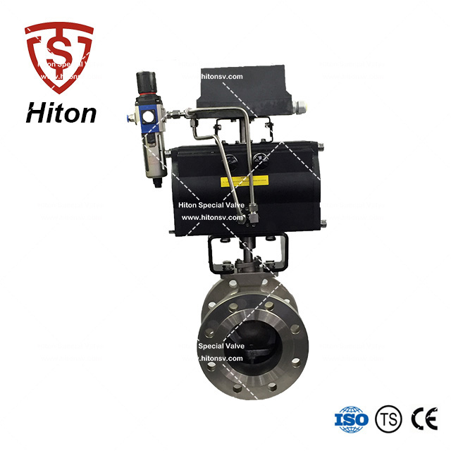 a) 特殊設計(jì)的V型球對介質具有強有力的剪切(qiē)作用和密封性能,對介質的流量特性達到等比例調節。